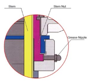 Large diameter and high pressure valves are available with thrust bearing at stem nut assembly and at the same time equipped with grease nipple to provide periodic lubrication for smooth and easy operation.